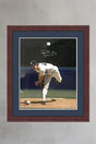 Framed in a 2 inch cherry wood frame. Matted in white and blue. 100% acid free matting to museum standards. Enclosed in conservation clear glass 99% UV protection to keep the signature from fading. Dust covered backed, wired ready for hanging.