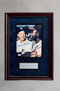 Framed in a 2" vintage ornate brown wood frame, matted in black, maroon  and blue suede.A custom designed descriptive plate is included. 100% acid free matting to museum standards. Enclosed in conservation clear glass 99% UV protection to keep the signature from fading. Dust covered backed, wired ready for hanging.