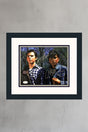 Custom Framed in a 1" Black Frame, triple matted with off-white outer mat, and blue & silver inner matting. 100% acid free matting to museum standards. Enclosed in conservation clear glass 99% UV protection to keep the signature & art from fading. Dust covered backed, wired ready for hanging.