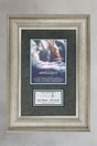 Custom framed in a 2 1/2" lillie silver hatched frame, triple matted with moon marble outer mat and black suede & bimini blue inner matting. Matted into the display is a engraved description plaque. 100% acid free matting to museum standards. Enclosed in conservation clear glass 99% UV protection to keep the art from fading. Dust covered backed, wired ready for hanging.