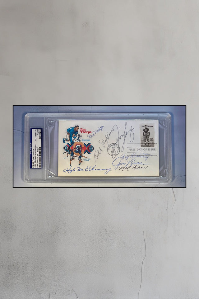 Jim Thorpe FDC signed by Brown, Willis, Badgro, Hein, Flaherty +2-PSA is backordered and will ship as soon as it is back in stock.