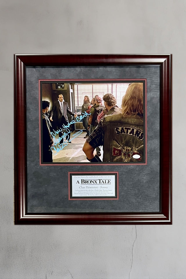 Featuring an 11x14 photo signed by actor Chazz Palminteri best known for his role as Sonny from the hit movie A Bronx Tale. Chazz has added the inscription " Now You'ze Can't Leave" to this photo.