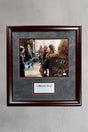 Custom Framed in a 2" high quality cherry wood frame. Matted in maroon, and black. Enclosed in conservation clear glass 99% UV protection to keep the signature from fading. Dust covered backed, wired ready for hanging in your den, office or man cave.