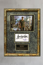 Custom framed in 2 inch bamboo style wood. Triple matted in black, gold and camouflage. A custom engraved descriptive plaque is included. Enclosed in 99% UV museum glass to protect the signature from fading. Dust covered backed, wired ready for hanging in your den, office or man cave.