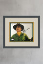 Custom Framed in a 1" Flat Black Frame, Triple Matted with Gray Outer Mat and Yellow and Green inner matting. 100% acid free matting to museum standards. Enclosed in conservation clear glass 99% UV protection to keep the art from fading. Dust covered backed, wired ready for hanging.