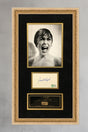 Framed in a 1 1/2 inch vintage wood frame. Matted in gold and black suede. 100% acid free matting to museum standards. A engraved descriptive plate is present. Enclosed in conservation clear glass 99% UV protection to keep the signature from fading. Dust covered backed, wired ready for hanging.