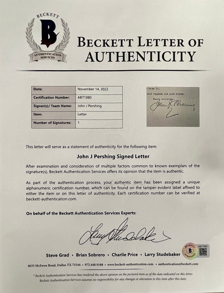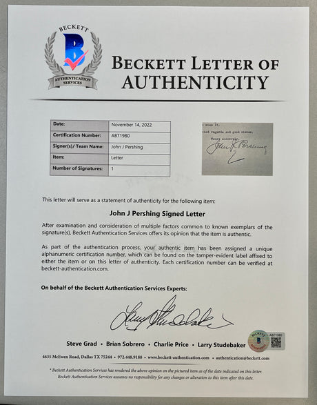 $995.00Unit price /UnavailableGeneral John "Blackjack" Pershing signed letter