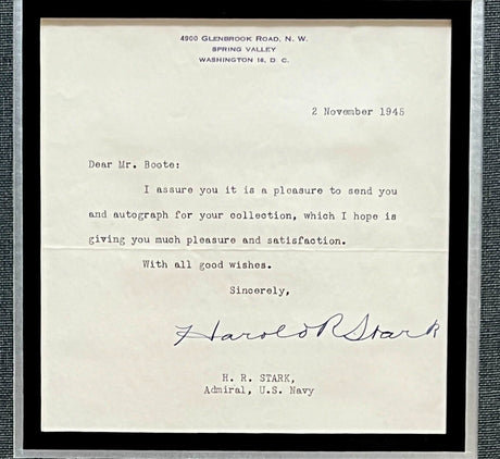 $525.00Unit price /UnavailableWWII Admiral Harold Stark signed letter