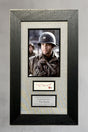 Custom framed in a 2" black wood frame. Triple matted in black, army green and tan linen. 100% acid free matting to museum standards. Enclosed in conservation clear glass 99% UV protection to keep the signature from fading. Dust covered backed, wired ready for hanging.