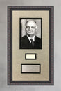 Custom Framed in a 1" black ornate frame, double matted with gray linen outer mat and black suede inner mat. Enclosed in 99% UV museum glass to prevent the signature and document from fading. Dust covered backed, wired ready for hanging