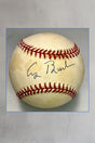 Official Rawlings American League baseball (Budig, Pres) signed perfectly on the sweet spot in blue ballpoint pen by the 41st President of the United States GEORGE H.W. BUSH d.2018. The ball shows some toning (see pictures). The vintage signature is bold and bright, without any imperfections. The ball comes with a full JSA letter #XX28055.