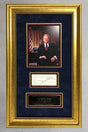 Custom Framed in a 2" gold with bead frame, triple matted with blue suede outer mat and gold & maroon suede inner mat. Enclosed in 99% UV museum glass to prevent the signature and document from fading. Dust covered backed, wired ready for hanging