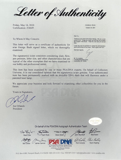 $945.00Unit price /UnavailablePresident George H.W. Bush signed letter w/9-11 content