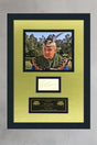 Museum Quality Custom Framing Details: Framed in a 1 1/2 inch black wood frame. Matted in black  and olive. 100% acid free matting to museum standards. A engraved descriptive plate is present. Enclosed in conservation clear glass 99% UV protection to keep the signature from fading. Dust covered backed, wired ready for hanging.