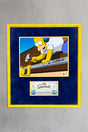 Custom Framed in a high quality yellow wood frame. Matted in black and, army green suede. A custom designed plaque is present. Enclosed in conservation clear glass 99% UV protection to keep the signature from fading. Dust covered backed, wired ready for hanging in your den, office or man cave.