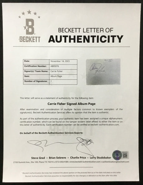 Carrie Fisher Star Wars ROTJ Signed Custom Framed Photo Display Beckett