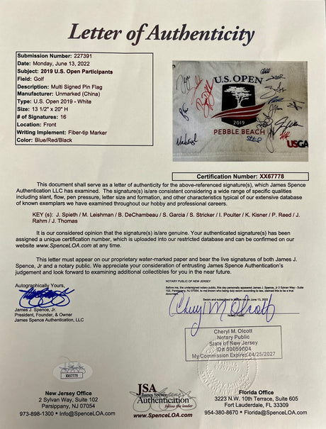 2019 Pebble Beach Pin Flag multi signed by 16 PGA stars