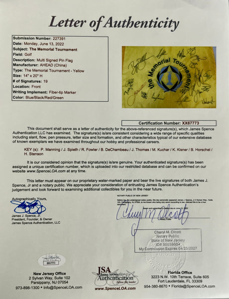 The Memorial Tournament Pin Flag multi signed by 18 PGA stars