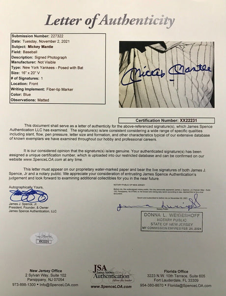 Mickey Mantle signed 16x20 photo
