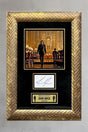 Custom framed in a 2" gold and black weave wood frame. Triple matted in black, gold and black suede. Enclosed in conservation clear glass with 99% UV Protection to keep signature from fading. A custom engraved d