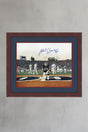 Framed in a 2 inch cherry wood frame. Matted in red and blue. 100% acid free matting to museum standards. Enclosed in conservation clear glass 99% UV protection to keep the signature from fading. Dust covered backed, wired ready for hanging.
