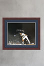 Framed in a 2 inch cherry wood frame. Matted in white and blue. 100% acid free matting to museum standards. Enclosed in conservation clear glass 99% UV protection to keep the signature from fading. Dust covered backed, wired ready for hanging.